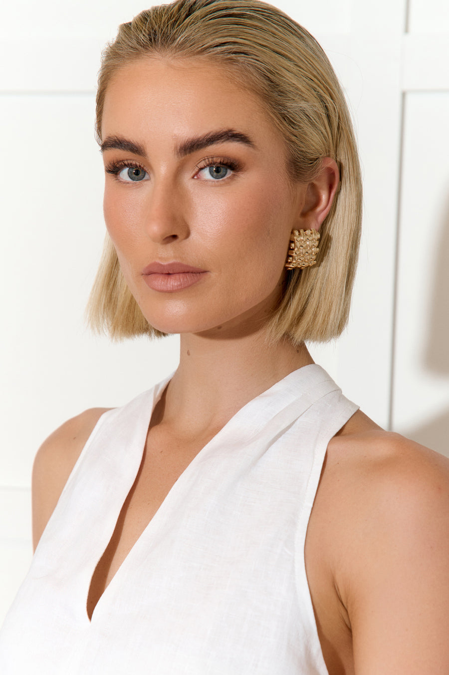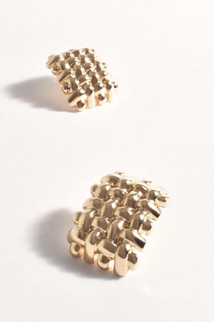 The product features a stud back closure and is made of plated metal. The earrings are braided and make a statement.