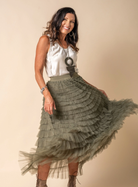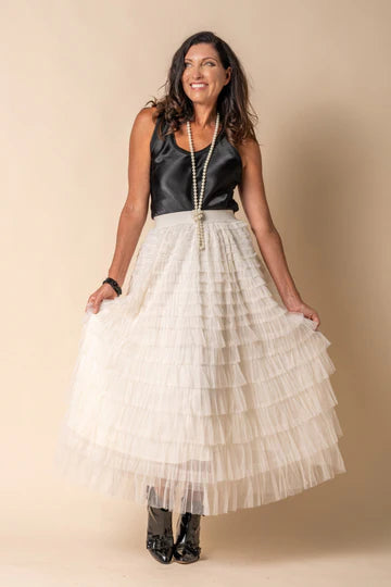 Discover the Amalia Skirt: a classic piece for your closet. Made from fine tulle, this lengthy skirt adds elegance to your look for any event. With its feminine charm and versatility, the Amalia Skirt is ideal for garden soirees, intimate nights out, and formal occasions.