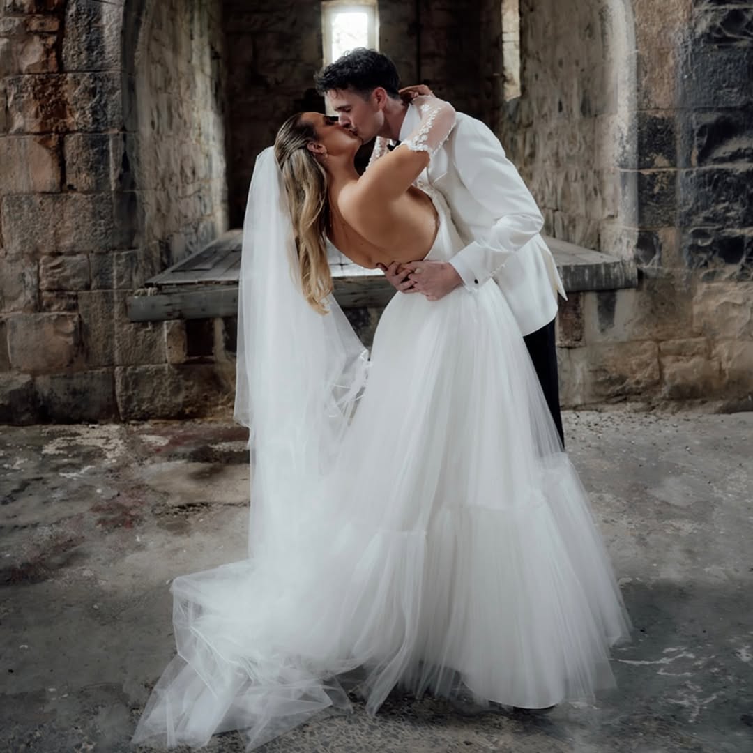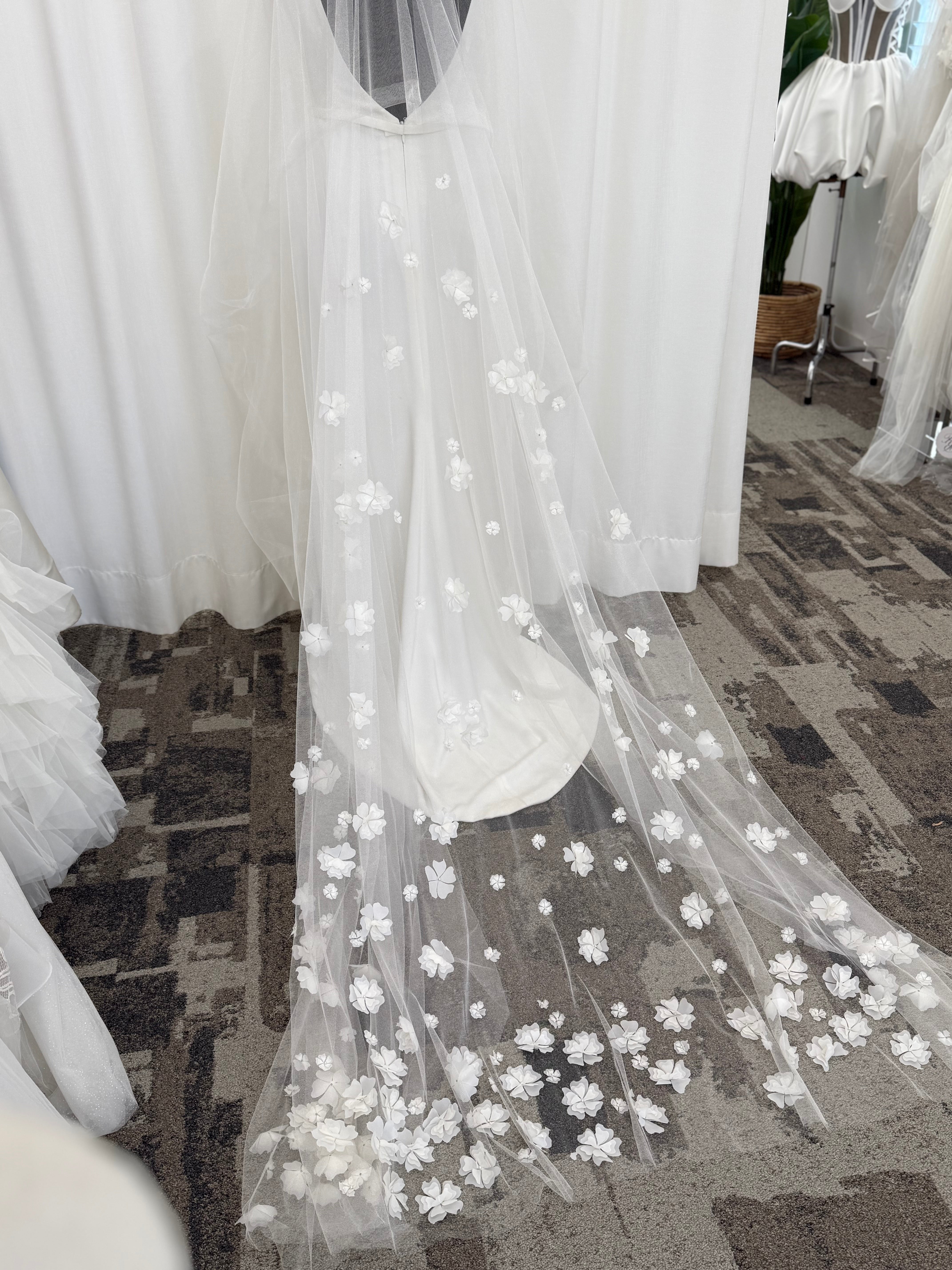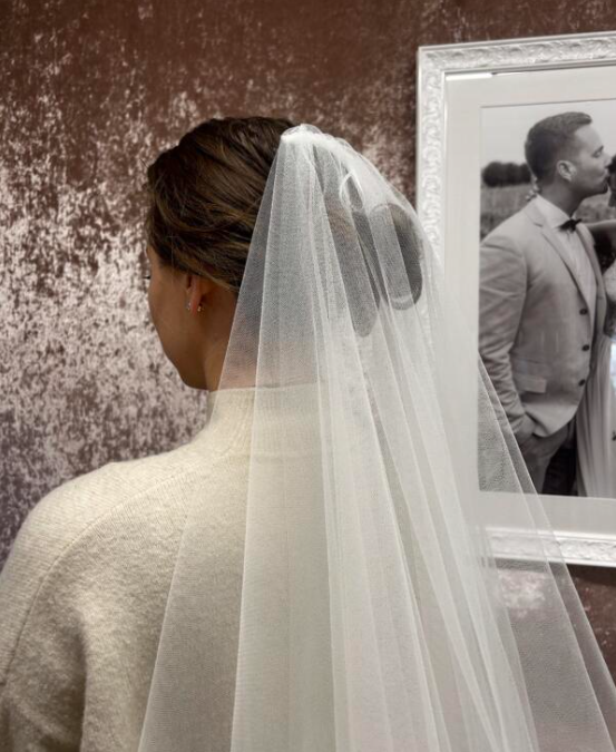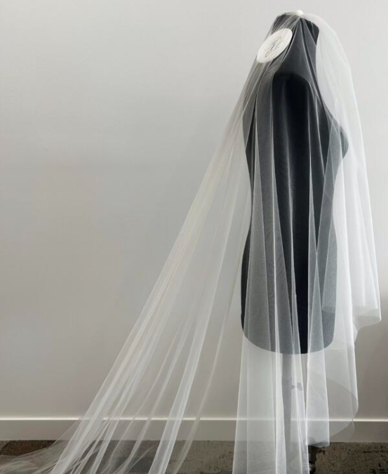Crafted from delicate, ethereal tulle, the Amelia veil features two perfectly layered tiers. The shorter blusher tier offers a traditional touch, gracefully framing your face for those unforgettable aisle moments, while the longer, flowing tier cascades behind you, creating a breathtaking silhouette.