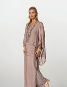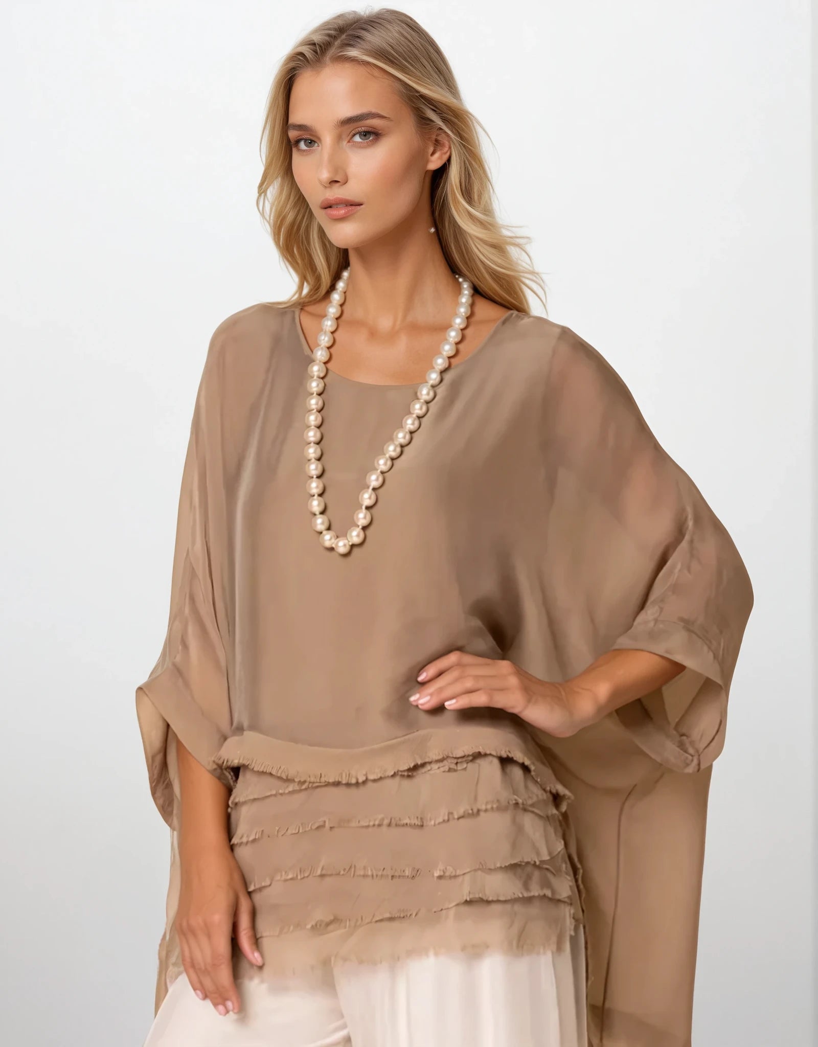 Flaunt your charm in the Amulet Silk Top in Desert. Luscious layers of silk at the bottom of the front create a bold effect, while a frayed hem adds an extra hint of elegance. Perfect for your night-time events, this wardrobe essential is sure to bring out your true glamour.