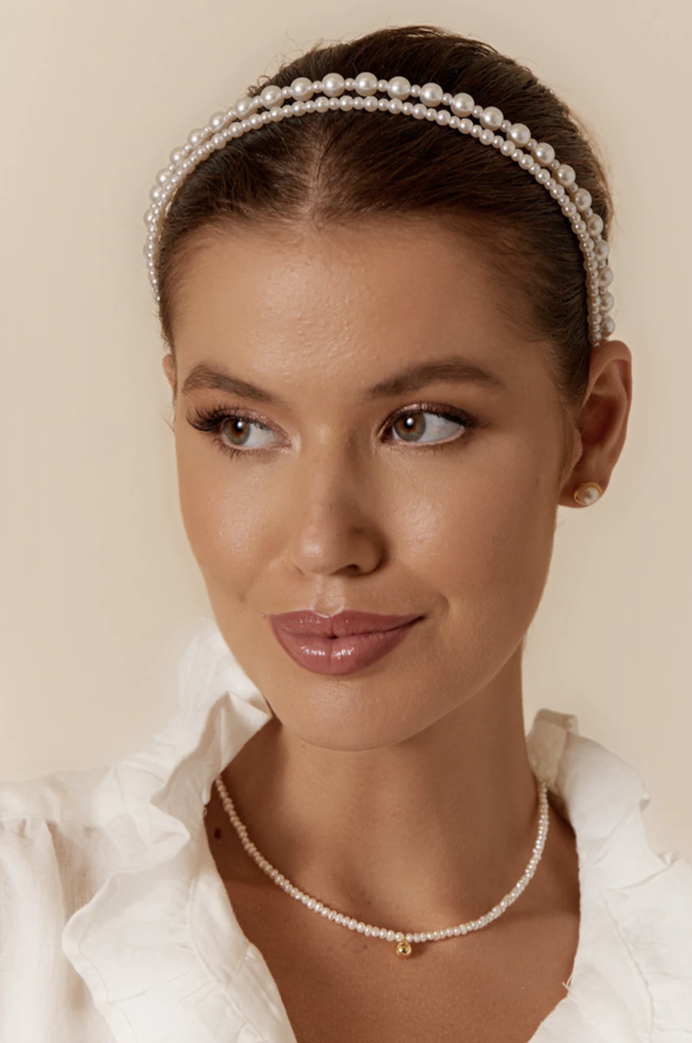 Add a timeless touch to your ensemble with our beautiful Audrey Pearl Headband.