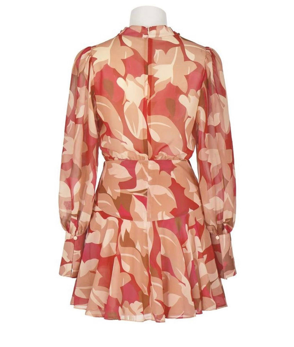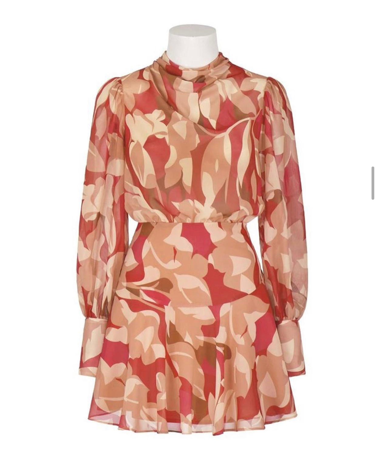 With red and earthy tones this mini dress is perfect to warm up any occasion.