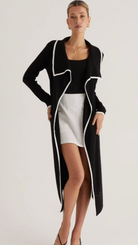 The Bronte Cardigan is a beautifully crafted full-length piece featuring an elegant collar and a delicate outline detail along the hem. Its long, flowing design makes it the perfect choice for staying warm during chilly weather while maintaining a sophisticated, classy look. Available in two timeless colors: black and beige.