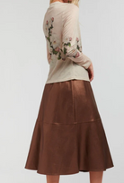 Made from a stretch fabric blend of 55% coated fabric, 40% polyester, and 5% elastane, this midi skirt is ideal for both day and night looks. Pair it with a blouse and heels for an elegant evening outfit, or style it with a cozy sweater and ankle boots for a chic, casual look. Available in sizes S/M (8-10)