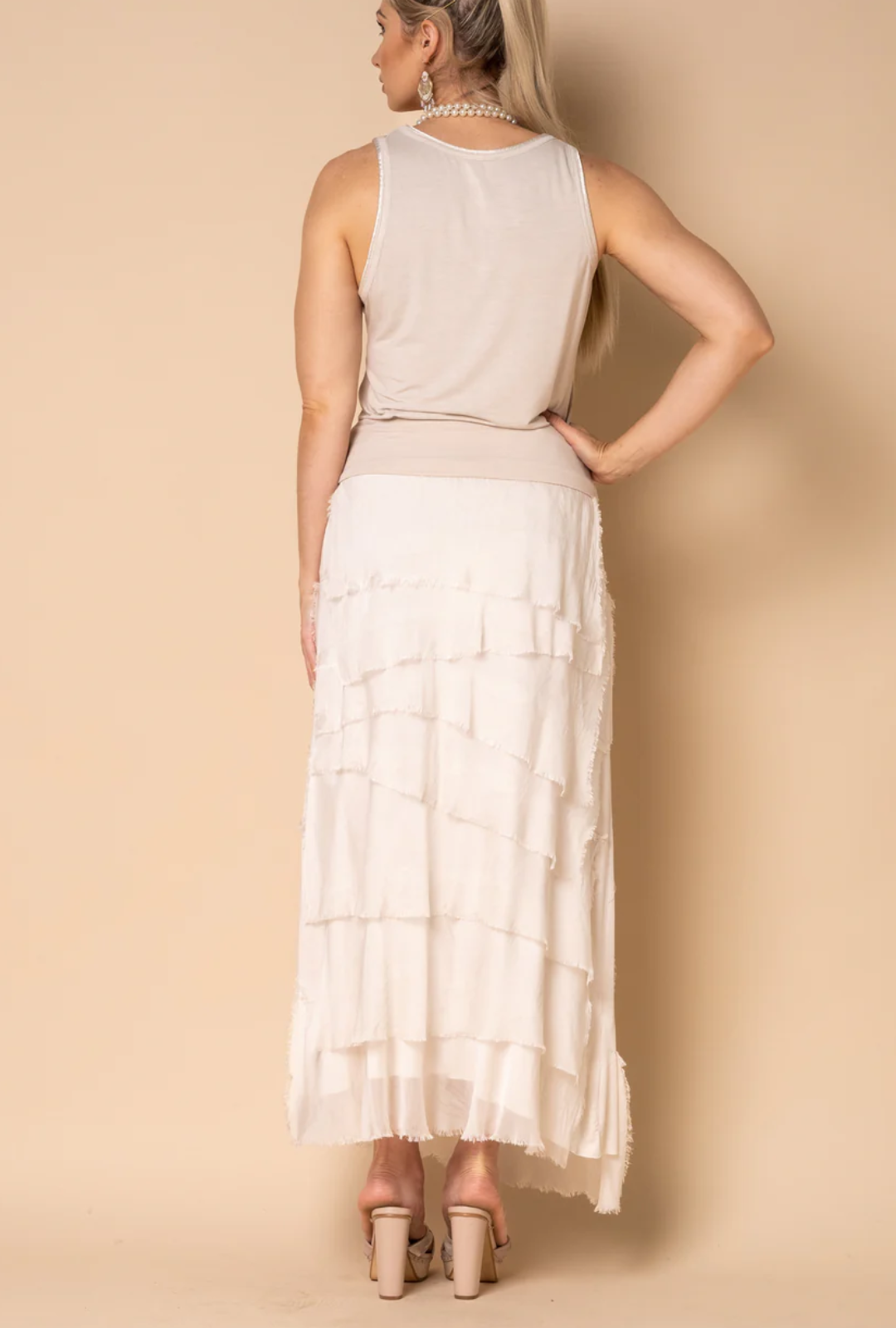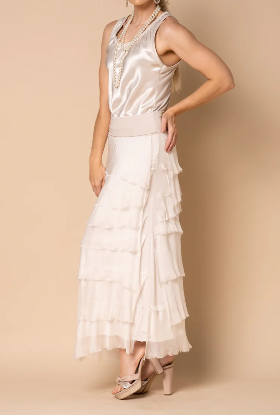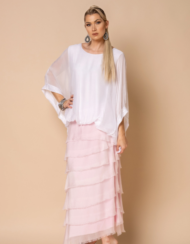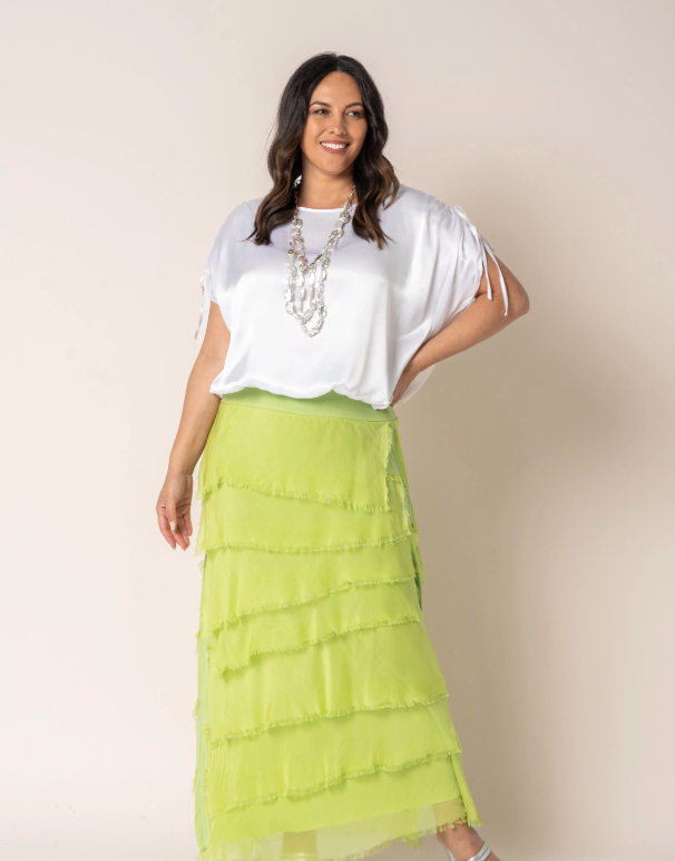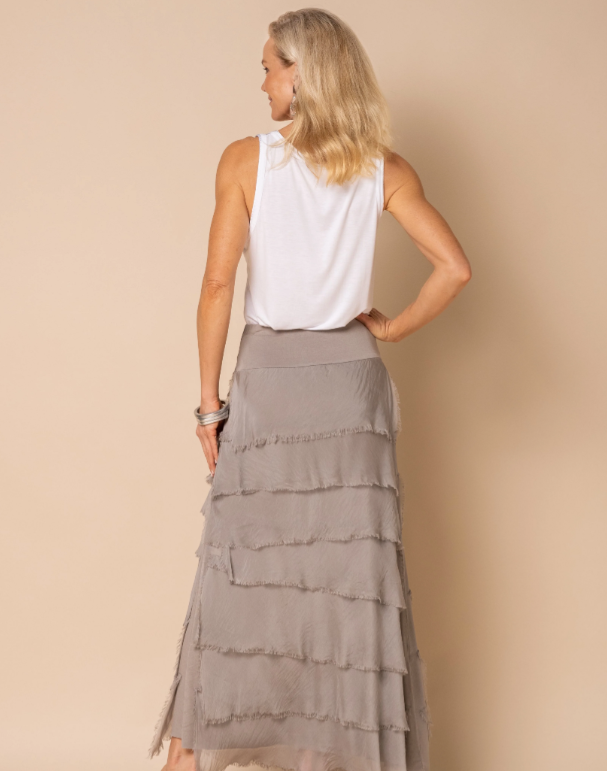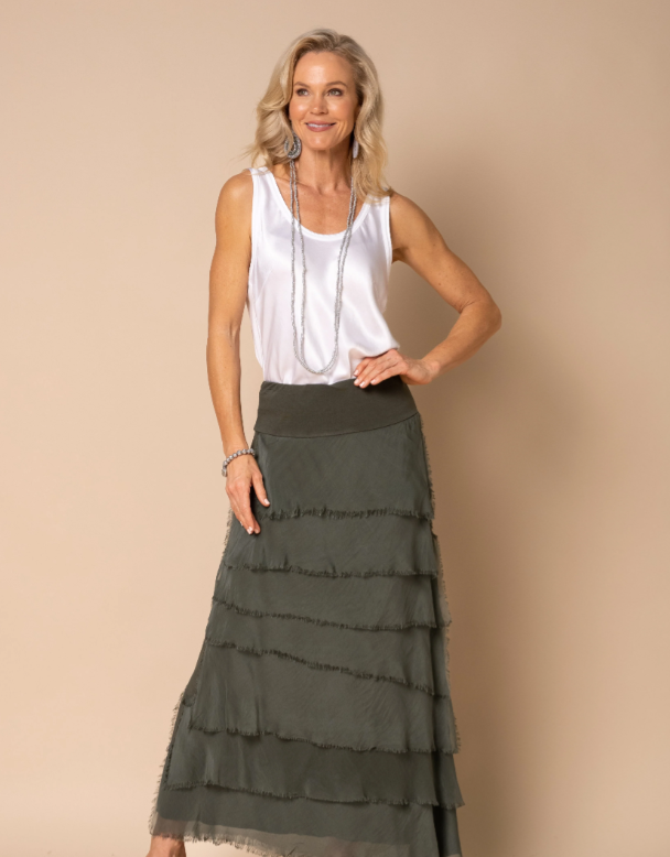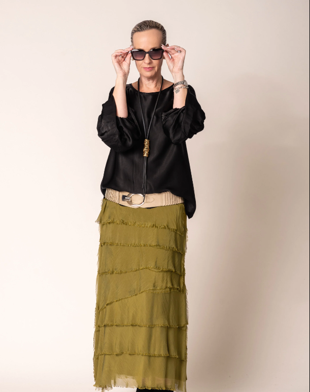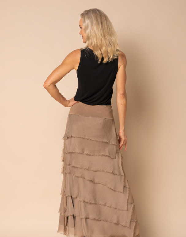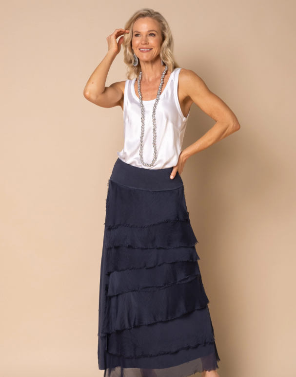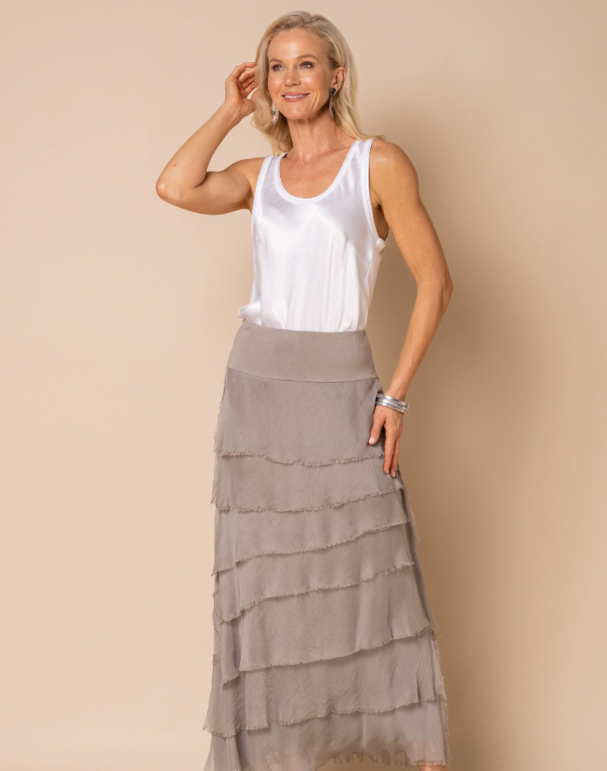 The Fifi Skirt from Imagine Fashion is renowned for its timeless design and luxurious comfort. Crafted from a blend of stretch cotton and silk, this skirt makes a stunning statement that you can enjoy wearing for years to come.