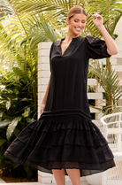 The new Frances cut in black 2022 just in time for spring with a short puff sleeve and extra frills on the skirt as a new detail. don't miss out on yours