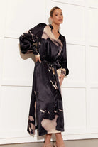This stunning dress is the perfect piece to take you from the warmer to cooler months in style. With a striking marble print, this dress is true to size, and features: