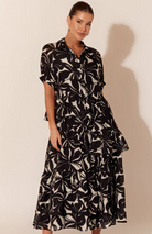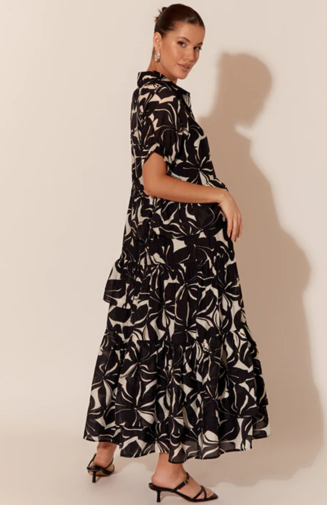 Make a statement in our Huxley Short Sleeve Print Dress. This sophisticated piece is finished with frilled tiers for a touch of extra flair and is perfect for both casual and formal occasions.