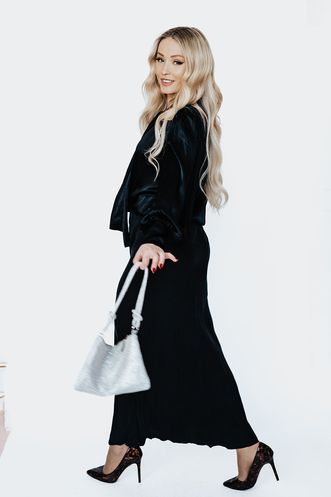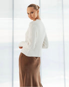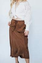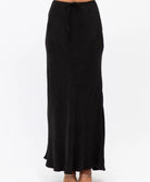 A midi length skirt with a soft elastic waist with a tie. Soft cupro fabric in a bias cut.