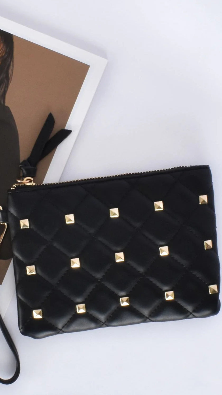 Diamond quilted design with gold-tone stud detailing