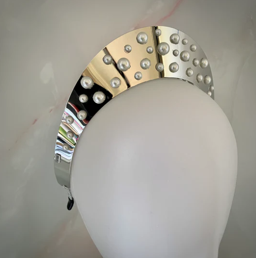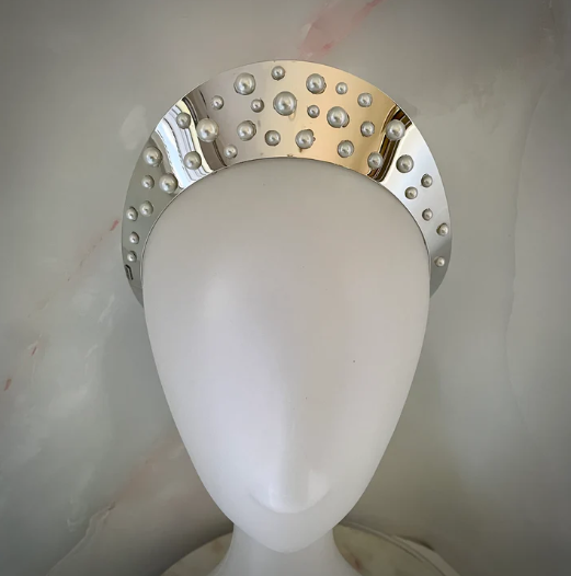 The Northerly crown is a luxurious headpiece fit for a queen! She features a reflective silver toned crest with pearls dotted across her face. It would be a breathtaking statement piece, commanding attention and admiration wherever it's worn. Part of our Looking Glass collection. 4cm high.