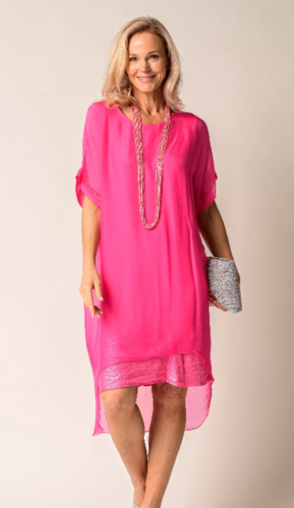 Elevate your wardrobe with our exquisite silk dress, featuring a stunning sequinned slip that adds a touch of glamour to any occasion. Crafted from luxurious, lightweight silk, this dress drapes beautifully, ensuring a flattering fit that moves gracefully with you. The soft, shimmering fabric feels divine against your skin, while the eye-catching sequinned hem catches the light with every step, creating a captivating silhouette.