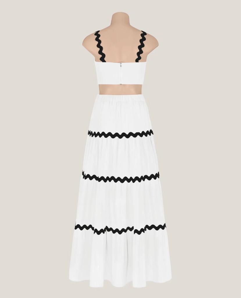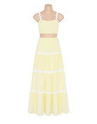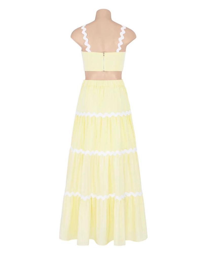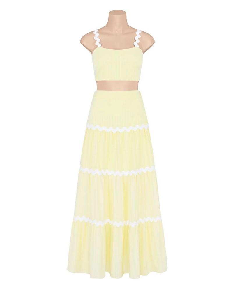 The Madi Set is a beautiful two piece cami and skirt combo that you'll have on high repeat through the warmer months! This cute set will take you from day to night, and comes in two colourways: lemon and white, and white and black.