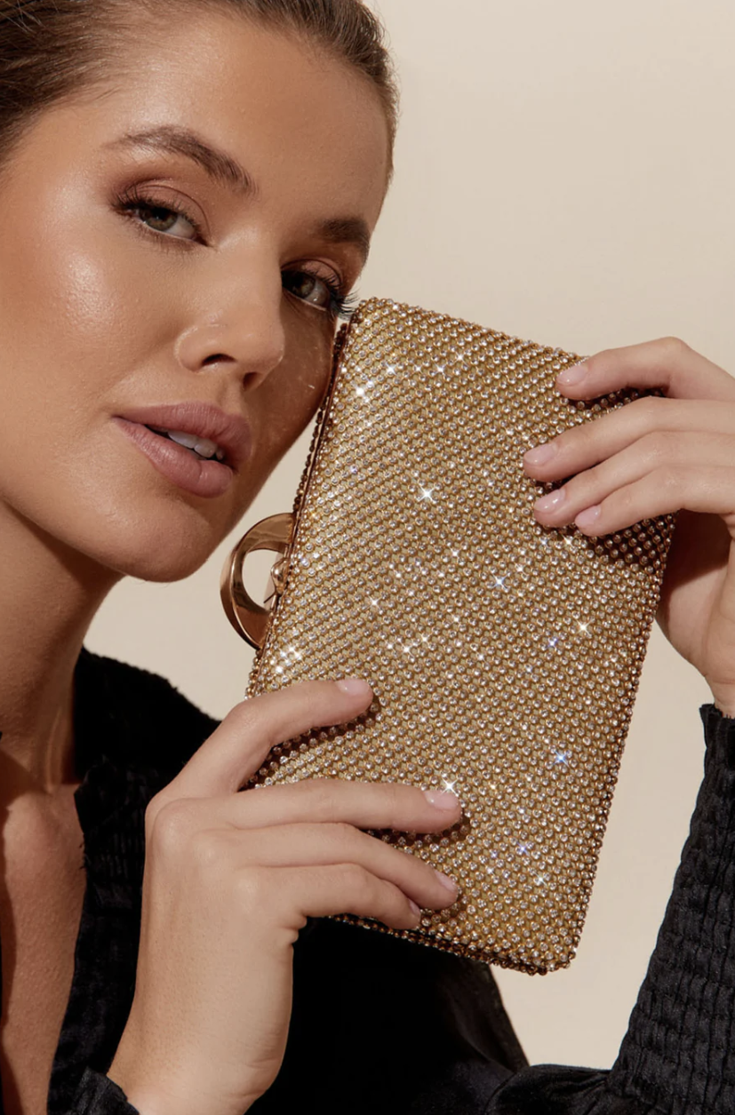 The dazzling Mariah Diamante Structured Clutch radiates glamour and sparkles when it catches the light. Making it perfect for any special evening or event.