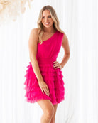 The Nora Mini is the cutest party dress for summer, designed to turn heads at any occasion. This dress comes in a gorgeous hot pink for those who love to stand out and a sophisticated black for those seeking a more classy aesthetic. The one-shoulder silhouette creates an elegant, modern look that flatters various body types, while the pleated ruffles add movement and visual interest to the design. A thick waistband provides structure and support, ensuring the dress maintains its shape throughout the day or night. Whether you're attending a garden party, beach celebration, or evening event, the Nora Mini delivers both style and comfort with its thoughtfully crafted details and vibrant colour options.