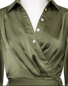 Olive Green Satin Wrap dress