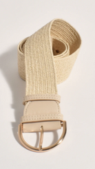 A versatile staple for effortless styling, this Woven Stretch Belt in a soft natural tone adds polish and ease to any outfit. Crafted with a flexible woven design, it comfortably cinches the waist while offering a flattering fit. The neutral beige tone complements everything from dresses to high-waisted trousers, and the gold-toned round buckle adds a refined finish. Faux leather accents at the ends provide structure and durability without compromising on style.