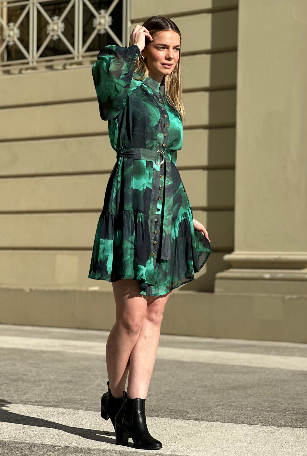 The crinkle chiffon fabric is soft and floaty to wear.