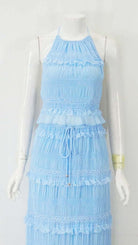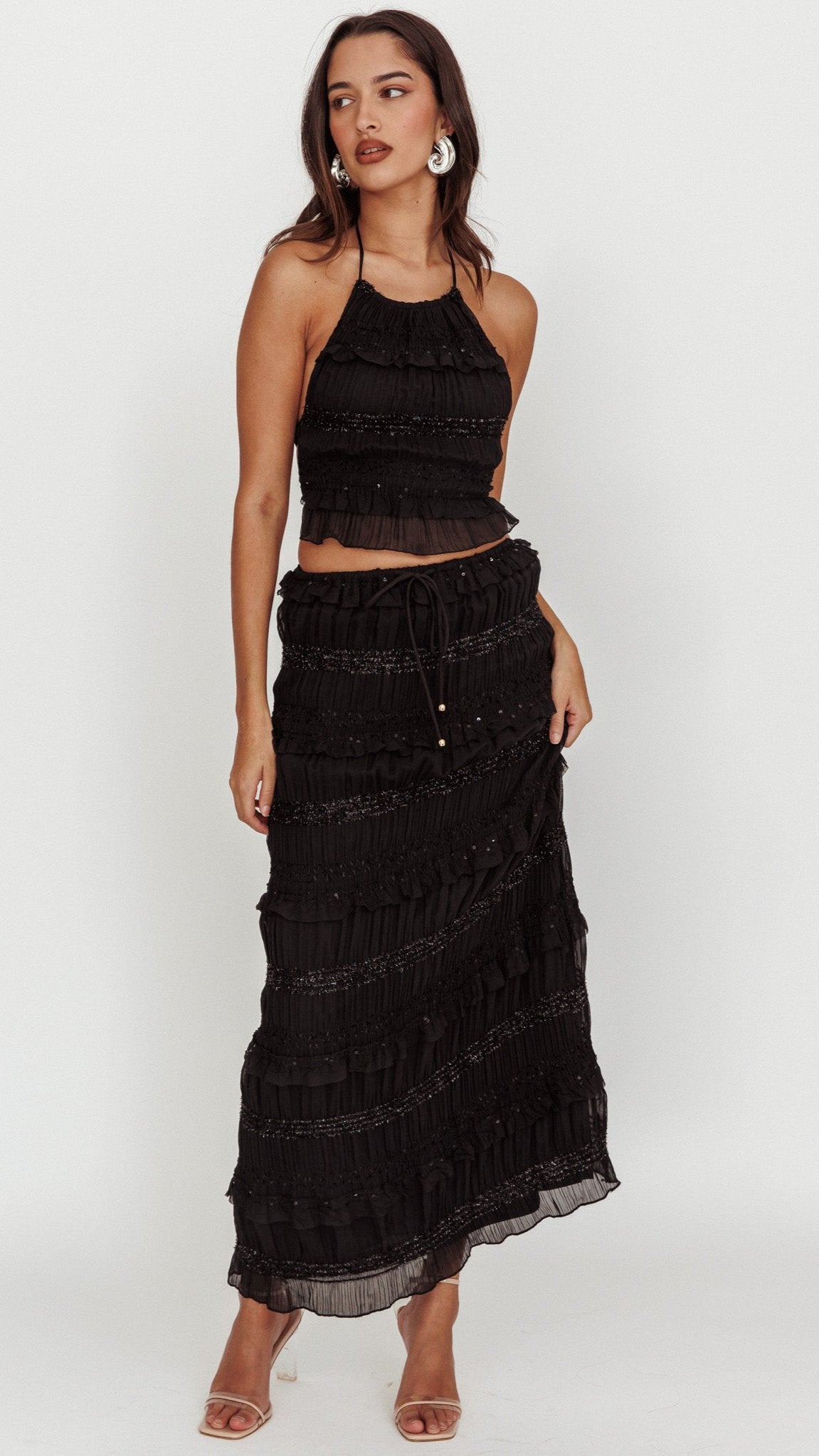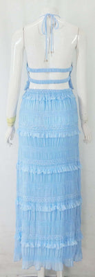 This Top is crafted from a delicate sheer fabric, offering a breezy and lightweight feel. The halter-neck top showcases an open-back design for a chic, elegant touch. Made from 100% polyester, this ensemble combines style and sophistication for a standout look.