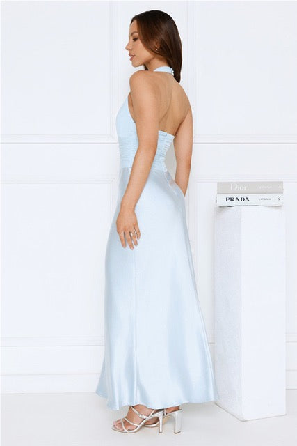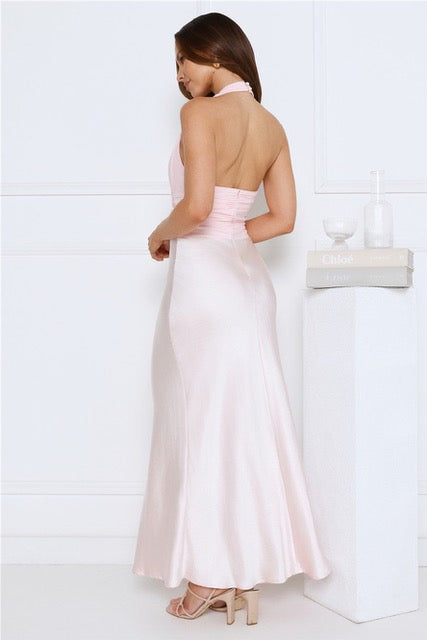 Effortlessly romantic with a modern twist, the Eloise Dress is made to make an entrance. It features a sleek satin skirt that drapes like a dream, paired with a soft mesh halter top that adds just the right amount of structure and shape.