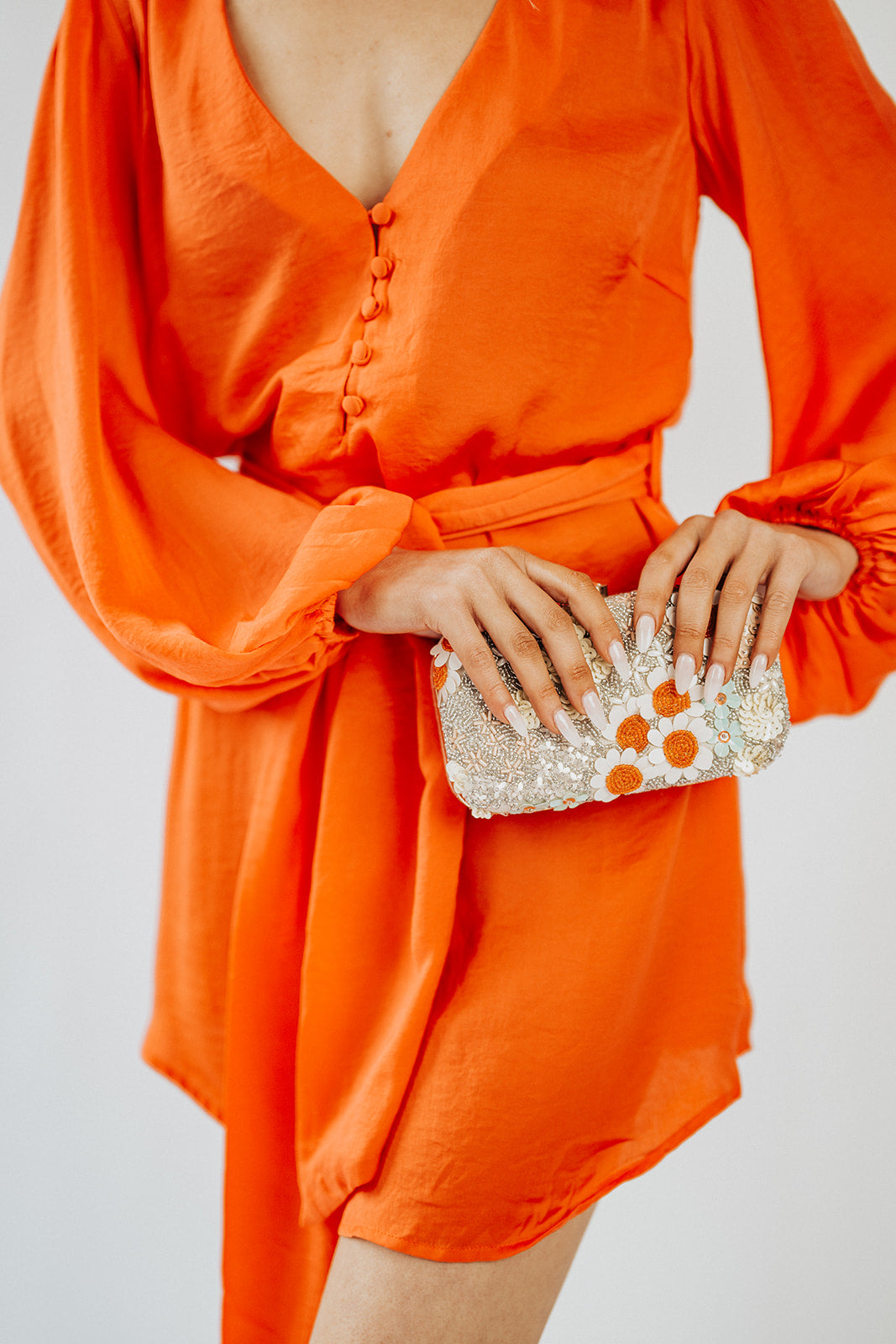 The Thea Mini comes in two bold colours, red and yellow, and is a soft satin fabric.
