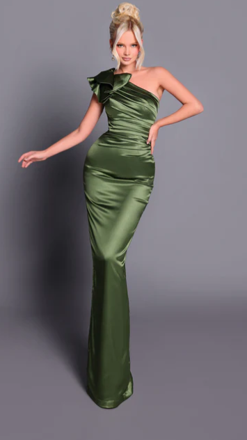 The Nicoletta Keelie is an elegant straight-cut gown featuring soft pleating across the waist for a flattering finish. Designed with a striking one-shoulder neckline adorned with shoulder detailing. The structured, bonded bodice offers support and a refined silhouette, making it a standout choice for any special occasion.