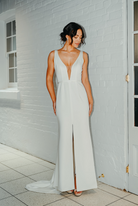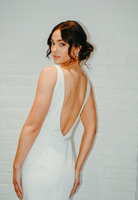 A stunning fit and flare dress designed for those who appreciate refined sophistication. This exquisite piece features a luxurious silk white fabric that drapes beautifully, creating a flattering silhouette that celebrates your curves. The custom low back design adds an alluring touch of modern glamour, while the delicate tulle v-neckline brings an ethereal, romantic quality to the overall look. Perfect for special occasions, evening events, or whenever you want to feel absolutely radiant, Sarah combines classic femininity with contemporary style. Whether you're attending a wedding, gala, or celebration, this dress promises to turn heads and make you feel confident and beautiful.