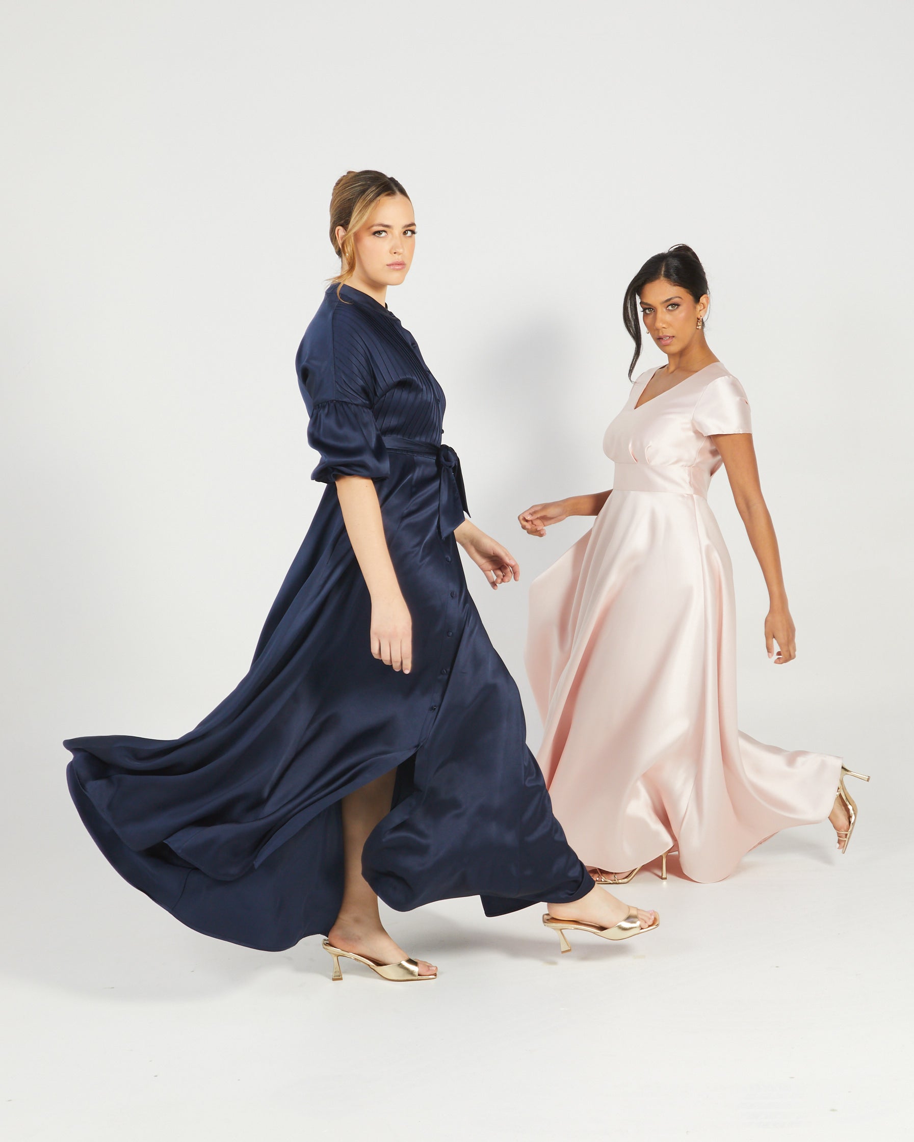 Sophia captivates with its luxurious design. The off-the-shoulder sleeves gracefully drape over the shoulders, leading to a bodice where intricate pleats overlap, adding texture and visual interest. Crafted from the finest satin, the fabric exudes a subtle sheen, enhancing its off white hue. The back features an intricate lace-up design, offering both an adjustable fit and a touch of vintage charm. Flowing into a full A-line skirt, the dress cascades effortlessly to the floor, creating a regal silhouette. Pockets are seamlessly integrated, blending functionality with sophistication. Every detail of Sophia speaks of unparalleled craftsmanship and timeless beauty.