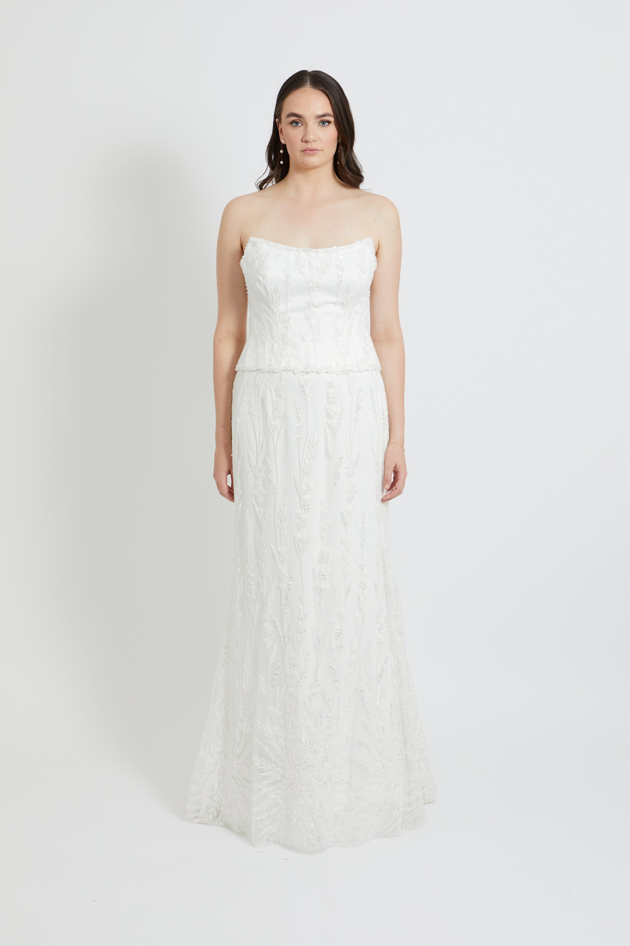 If your preferred size is in stock, your gown will be shipped within 7–10 business days. If your size is not available, please allow up to 6 months for your gown to be lovingly made to order. Once complete, it will be sent directly to you via tracked post. If you require your gown sooner, please contact [email protected] before placing your order. Unsure of your size? View our Size Chart and Measuring Guide or speak with one of our stylists for assistance