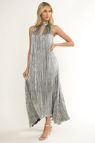 Greta maxi dress, made with a crepe texture and a halterneck design. For a truly stunning look, pair with silver strappy heels and a clutch for a birthday celebration. The partially lined dress features an elasticated back and zipper for a comfortable fit.