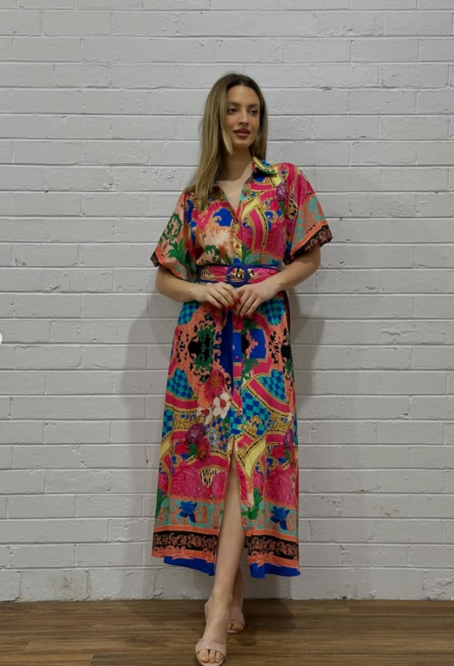 Effortless elegance meets everyday comfort in the Margot shirt dress. This maxi silhouette features a self-tie belt to define your waist, practical side pockets, and a classic button-through front. Short sleeves keep it light and versatile, while the viscose blend fabric drapes beautifully and feels soft against skin. True to size for a perfect fit.