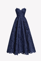 Eliza Nicoletta Style NC3063, a stunning ankle-length gown that captures hearts with its delicate lace embellishments and romantic strapless sweetheart neckline. The expertly tailored A-line cut and defined waist create a flattering silhouette that celebrates your natural beauty.
