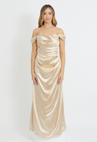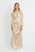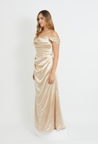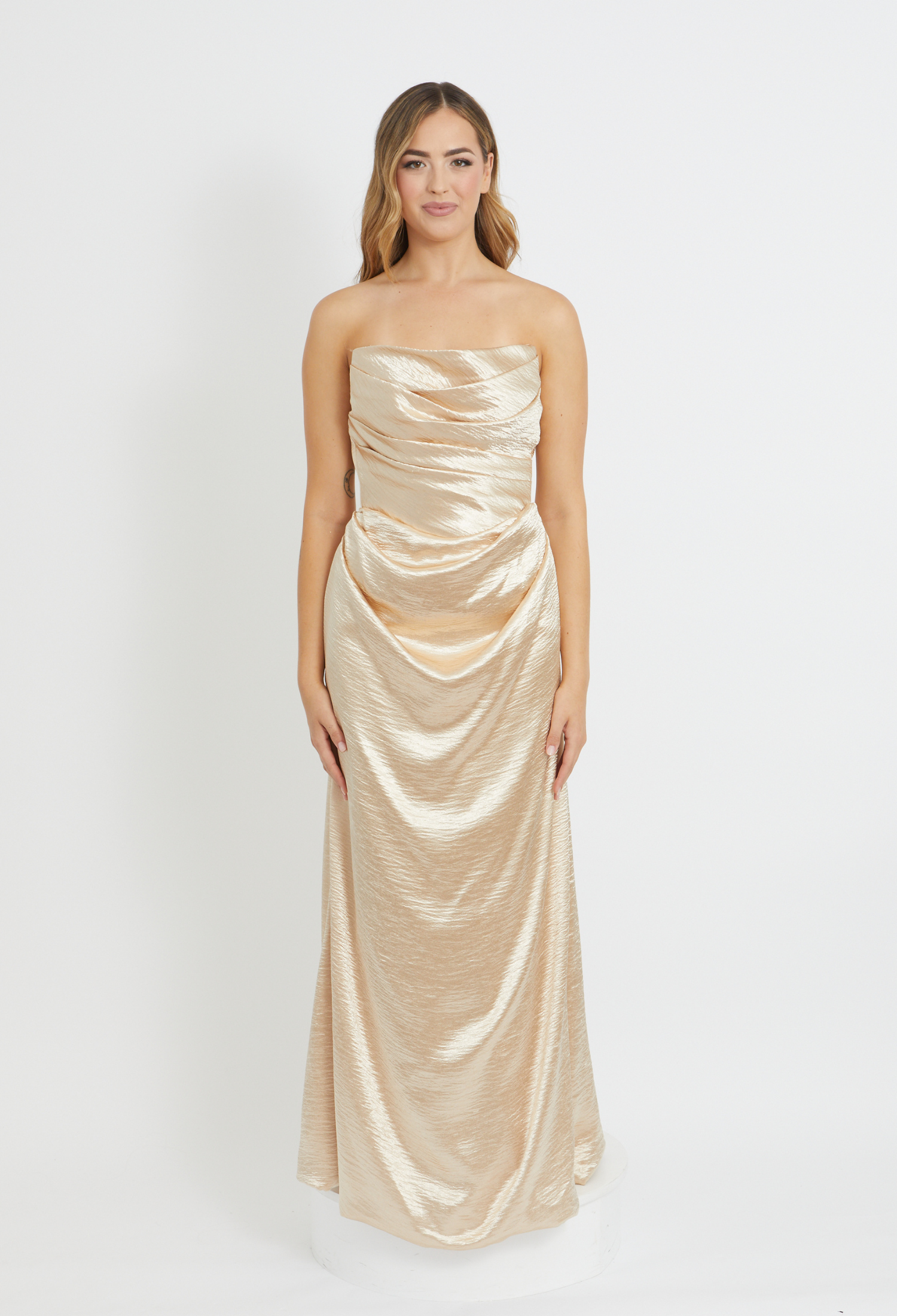 A modern, versatile statement piece designed to be styled your way. This elegant gown features a softly draped square neckline with structured boning through the bodice, creating a flattering, sculpted silhouette. The floor-length skirt falls effortlessly, offering a clean and timeless finish.