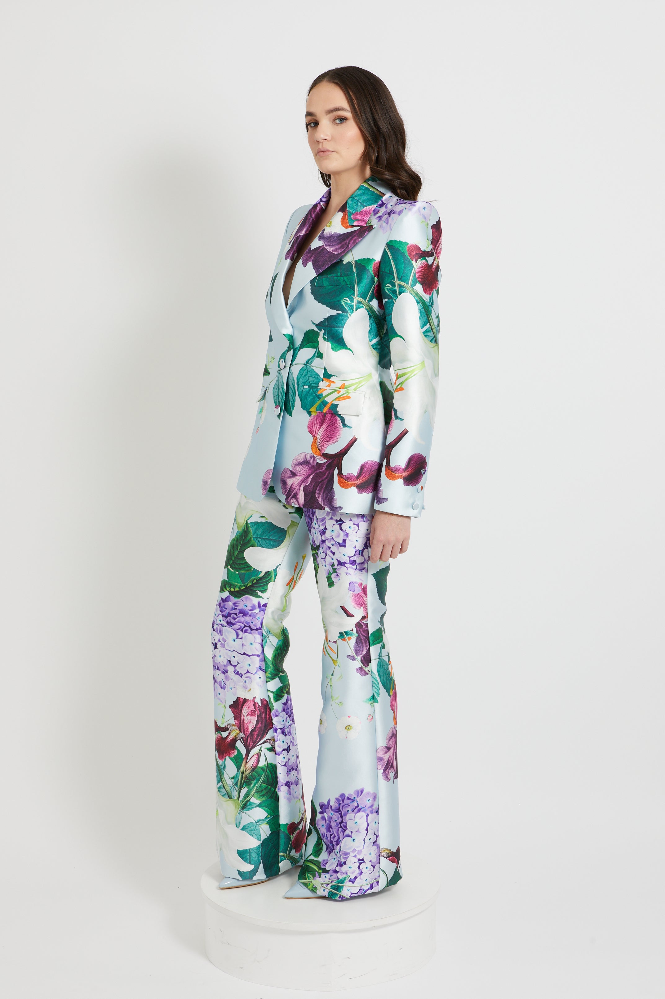 Elevate your look with the Cyprus Blazer — a beautifully tailored piece crafted from luxurious printed mikado. Featuring a vibrant botanical print, this blazer offers a structured silhouette with sharp lapels, clean lines, and a refined finish. Designed to make a statement, it can be worn as a full suit or styled individually for a bold, modern edge. Perfect for special events, fashion-forward dressing, or clients seeking something truly unique.