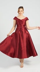 Crafted from luxurious mikado, the Petra Gown exemplifies timeless elegance with its striking off-shoulder design and distinctive crisscross neckline that frames the décolletage beautifully. The fitted bodice is defined by a refined waist cinched with a delicate self-fabric belt, creating a flattering hourglass silhouette. Below, the softly pleated skirt flows with graceful movement, offering both sophistication and comfort. This gown seamlessly transitions from formal events to black-tie occasions, making it an investment piece for the discerning wardrobe. The structured mikado fabric ensures the gown maintains its shape throughout the evening, while the classic design ensures enduring style season after season.