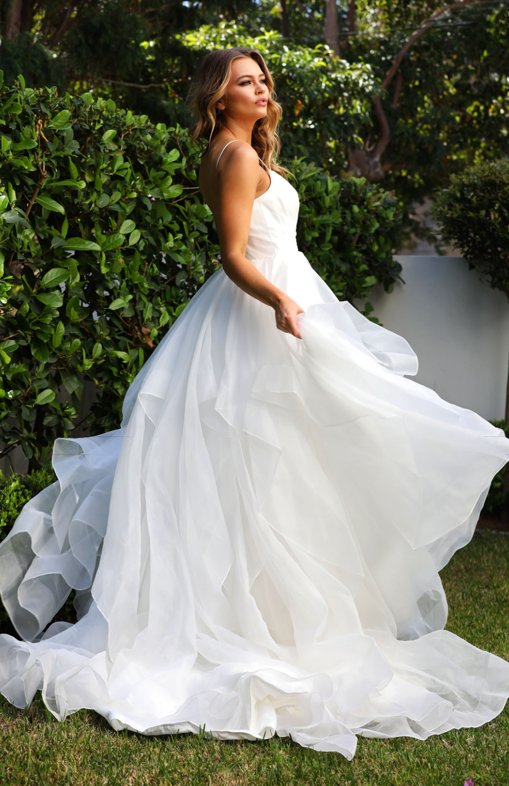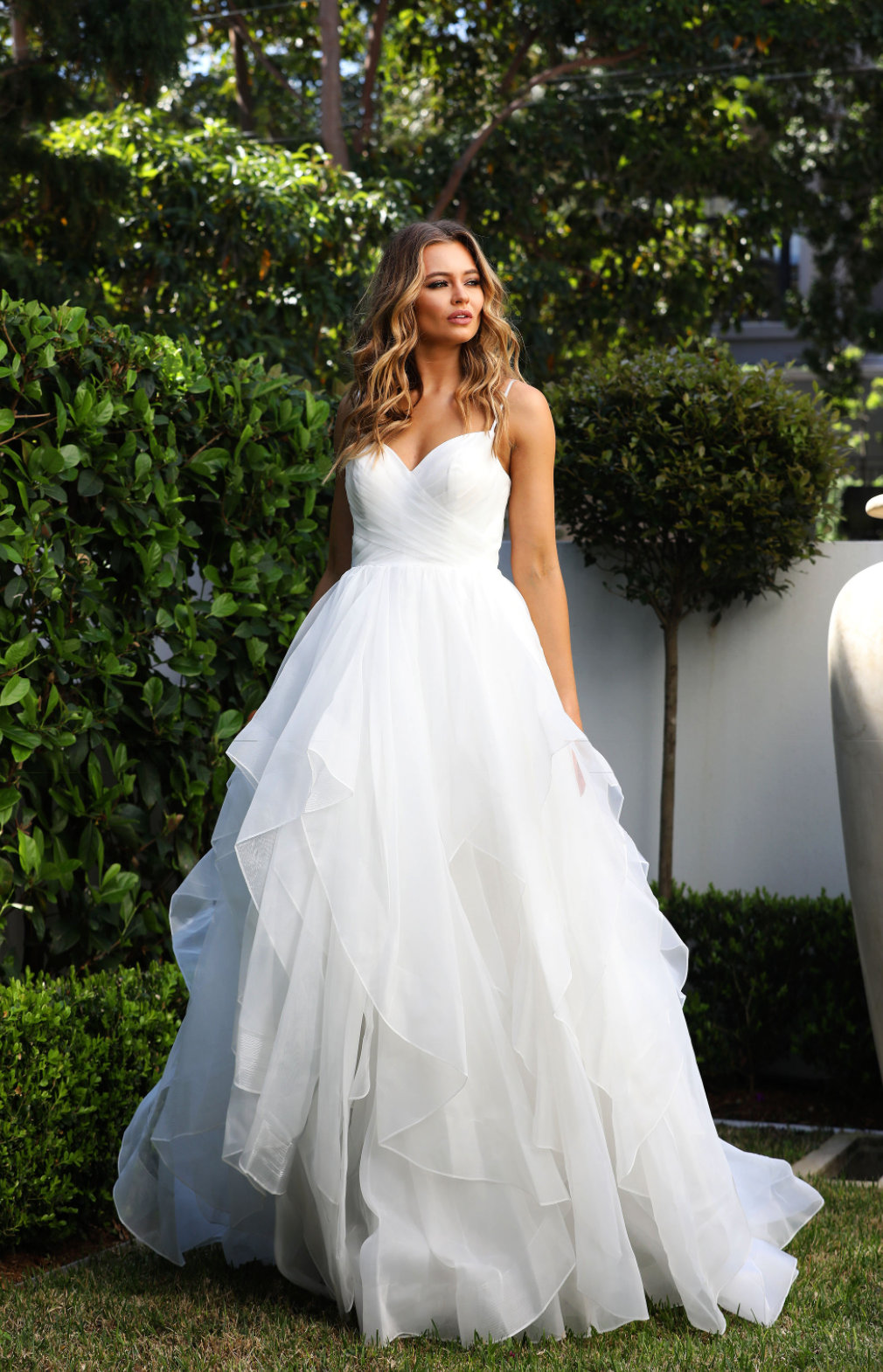 This stunning dress has its pleated bodice with a sweetheart neckline. this skirt is the wow factor with a big ball gown skirt with layers of fabric finishing at different lengths to give that WOW factor.
