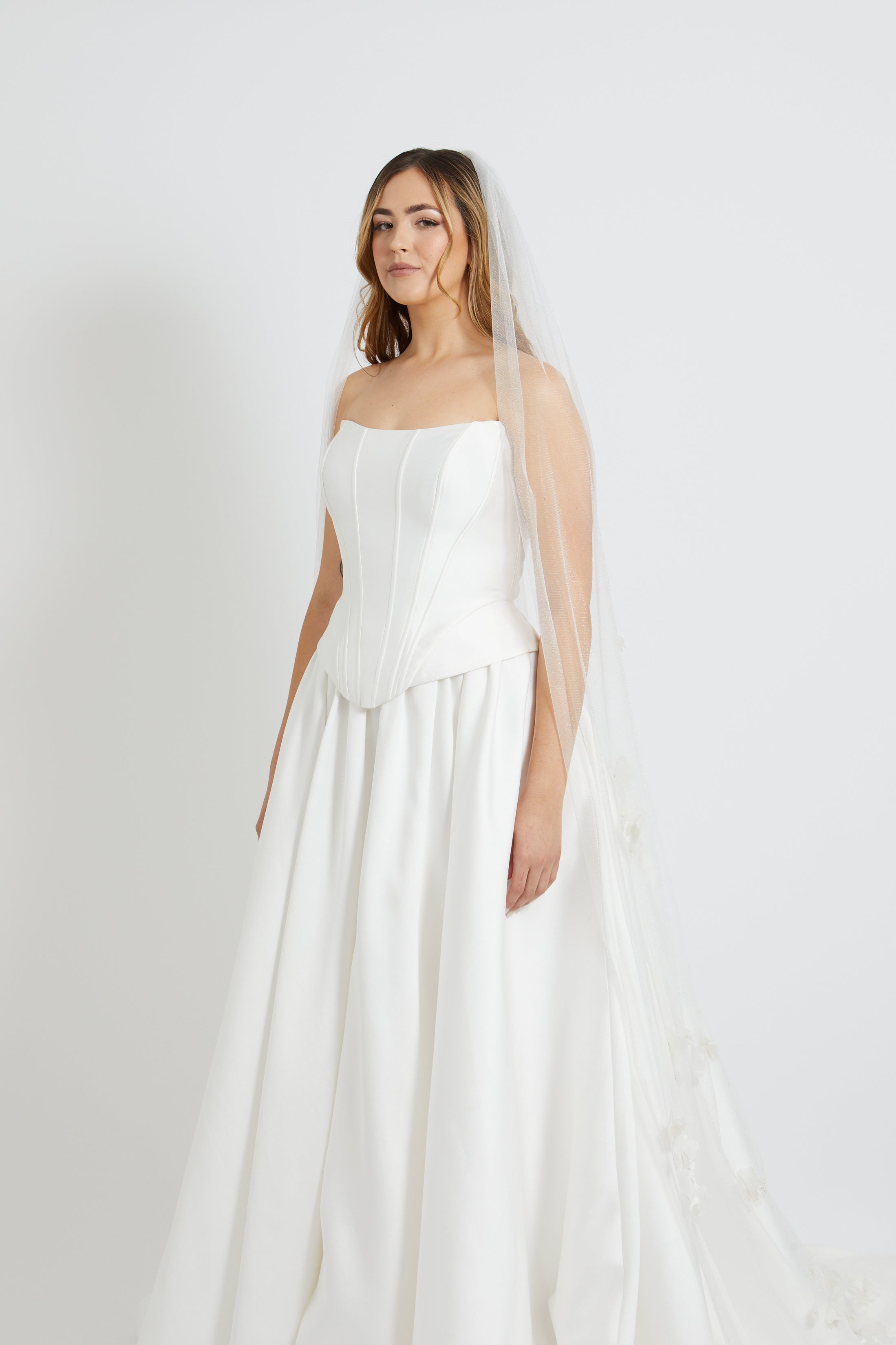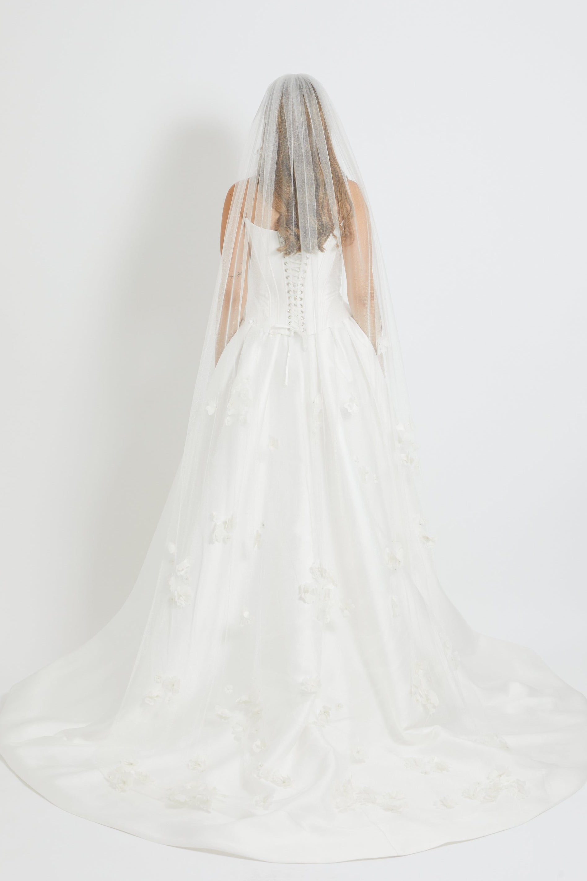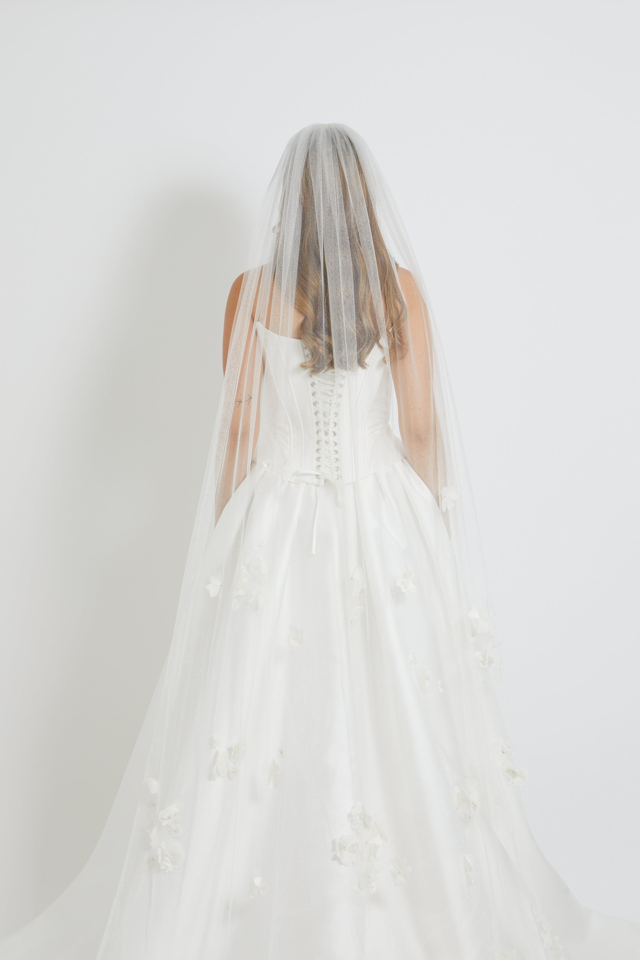 From a delicate, fingertip-length style that dances with every step to a dramatic cathedral veil that makes a grand entrance, each one is made with incredible attention to detail and beautiful fabrics. Whether you dream of a simple, classic drape or an intricate, lace-trimmed showstopper, our veils are the perfect finishing touch for your gown. They'll create a silhouette that's absolutely unforgettable as you walk down the aisle.