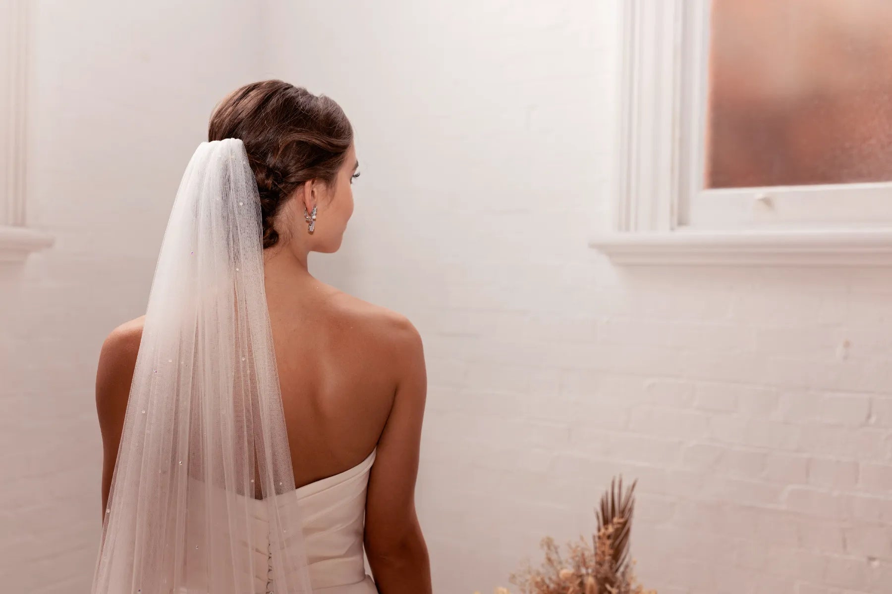 The Tiffany Design showcases beautifully scattered crystals in varying sizes, bringing a delicate sparkle and refined elegance to any bridal look. Available in classic clear or iridescent AB, these radiant crystals catch the light with every movement, creating a breathtaking, timeless accessory for your special day. Perfect for brides who desire a subtle yet glamorous finishing touch.