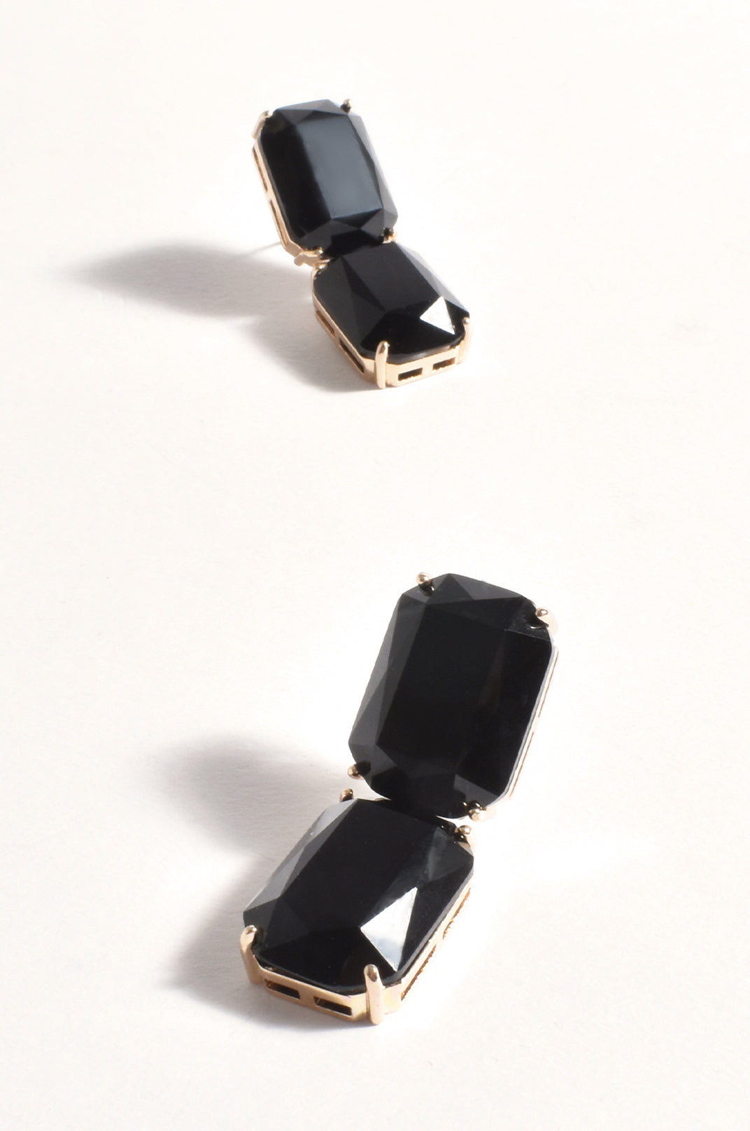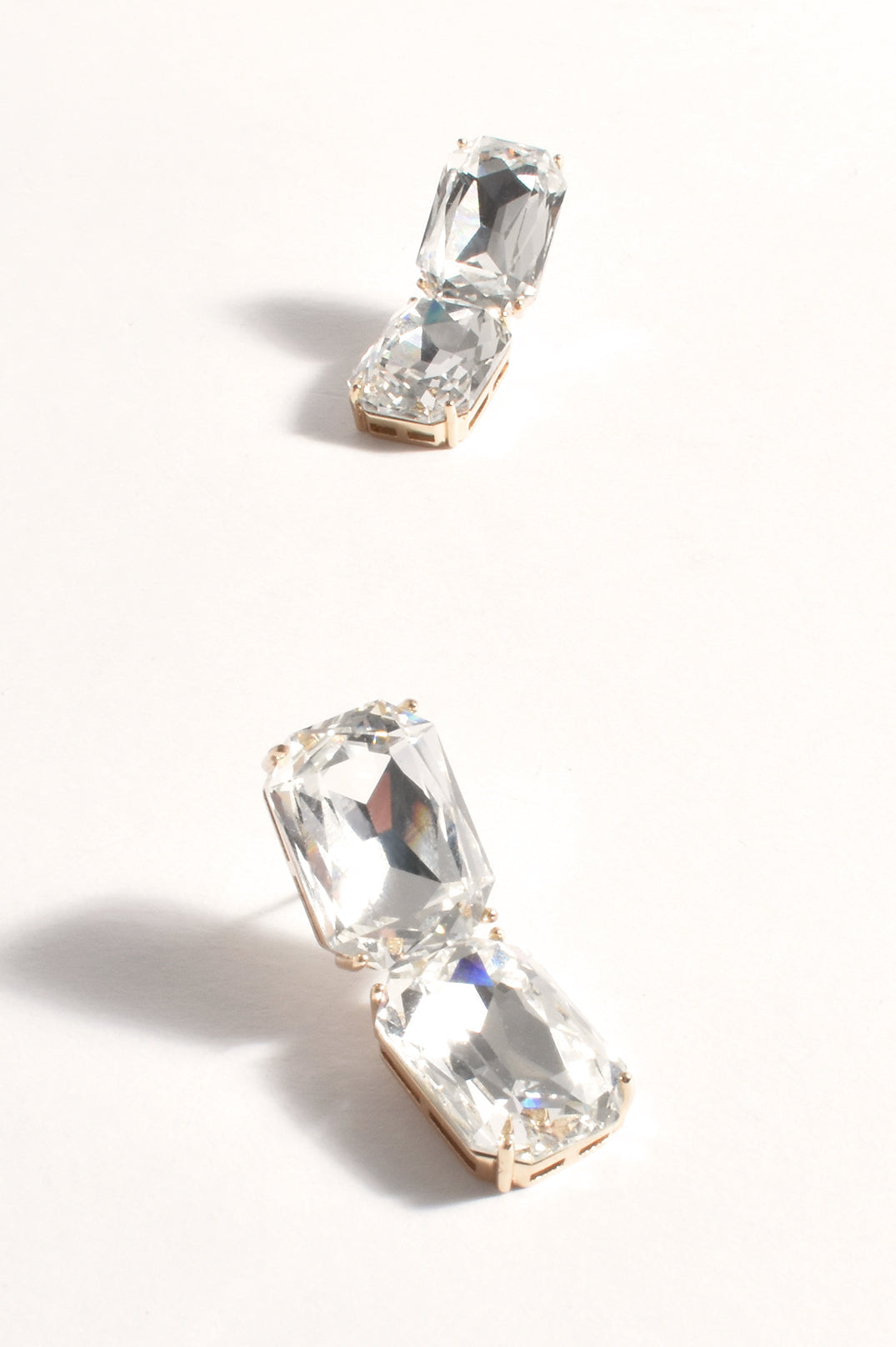 • Crafted with precision, these Astrid earrings feature a double square jewel drop design and are secured with a stud back closure. Made with high-quality materials of glass and plated metal, these event earrings measure 4cm in length.
